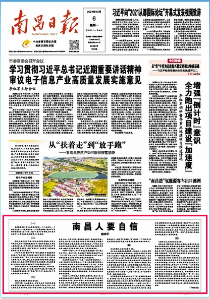 时间回到2021年,南昌曾发生了一件被很多人津津乐道的“大事”——《南昌日报》一周内三次在头版刊文喊话:南昌人要自信、要发奋、要齐心。