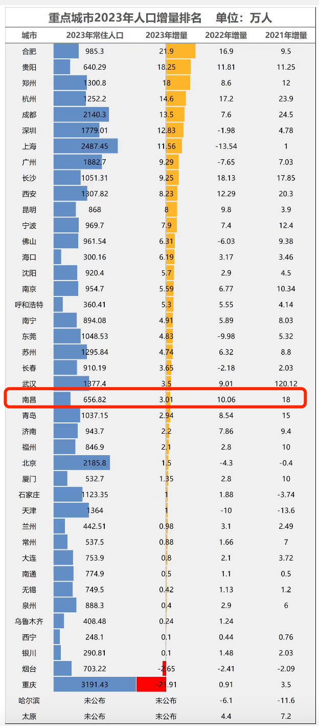 数据显示,2023年,南昌常住人口在2022、2021年连续高增长的基础上,再增加3万人。