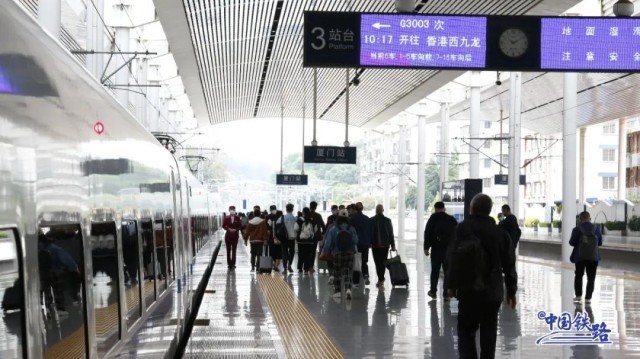 中国铁路广州局集团有限公司增加开行广东省肇庆、潮州、汕头等地区至香港西九龙站跨境列车12.5对,广深港高铁每日开行对数增至51对,进一步满足内地与香港间旅客出行需求。