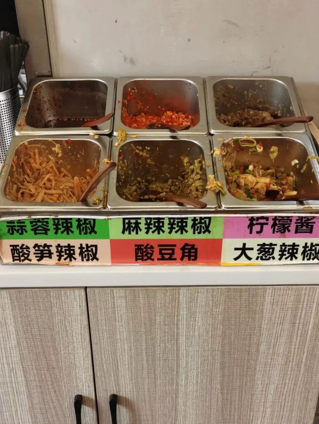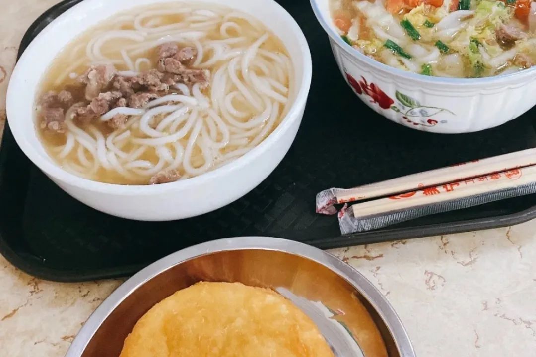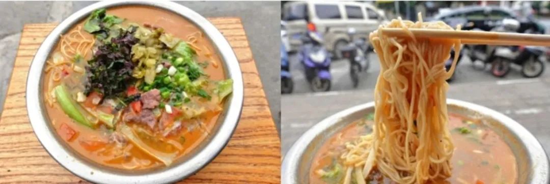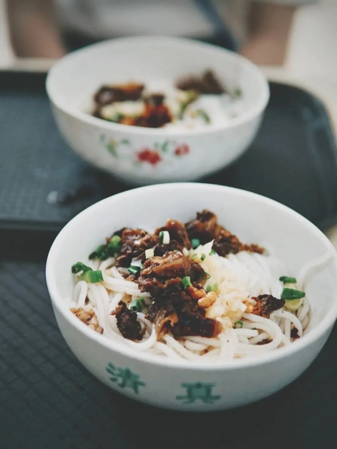 这家店最有名的就是老友伊面,吃起来筋道有嚼劲,搭配上腌制过的大块牛肉,还可以根据自己的需求在小料台取上一点葱花、紫苏、酸菜、辣椒等,便宜又好吃。