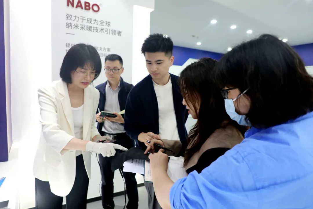 周红波(左一)介绍NABO地暖产品