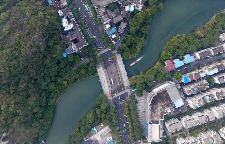 从天空中俯瞰,桂林中心城区仿佛一座被水环抱的洲岛。环城水系,由两江四湖组成。