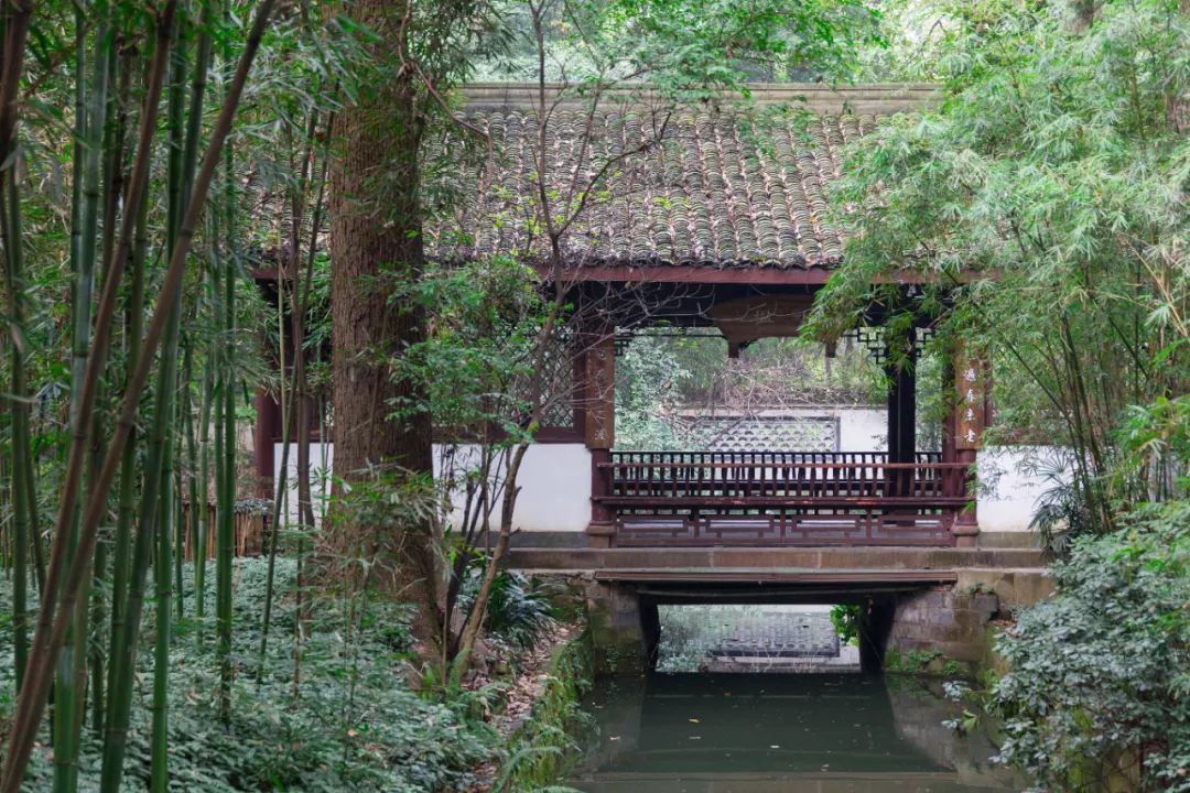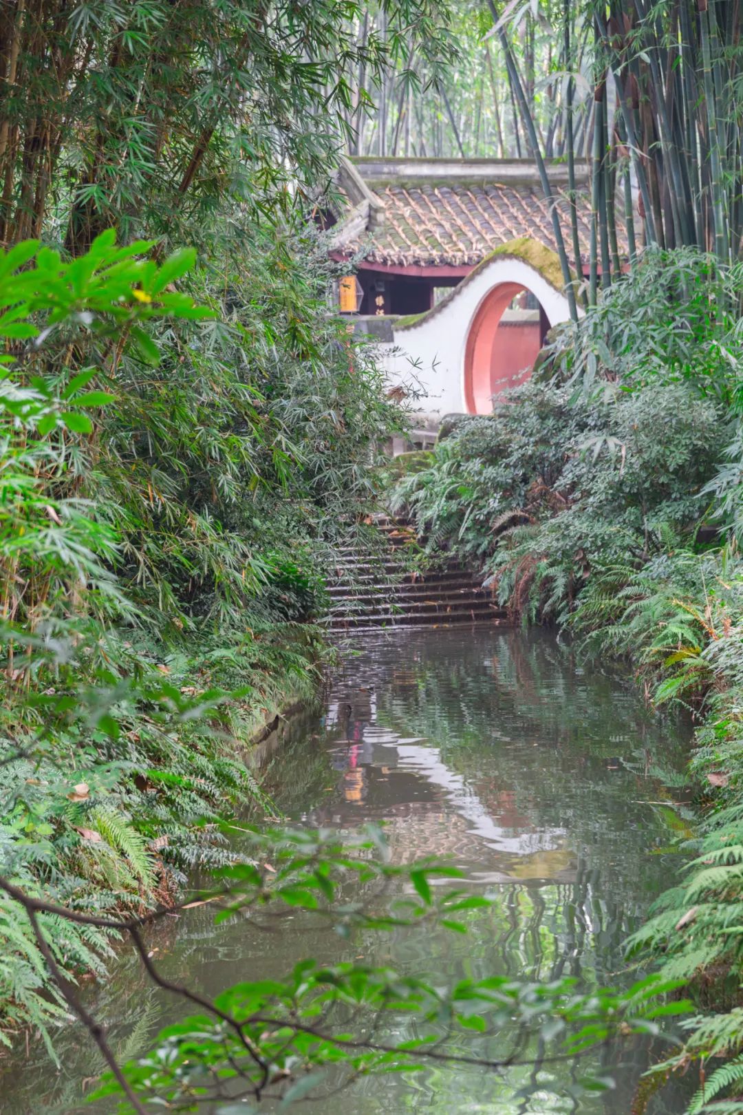 浣花溪公园,是成都市迄今为止面积较大的城市森林公园,茅庐小溪,石桥楼阁,竹林红墙,古色古香的建筑与繁茂的花草植被交相辉映,园中的每一处景致都充满了诗情画意,感受古风园林的安静惬意。