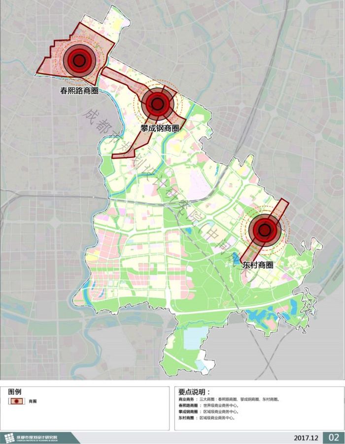 一是打造国际购物天堂核心区,将春熙路商圈打造成为世界级商业商务中心,二是将攀成钢商圈、东村商圈打造成为区域级商业商务中心。
