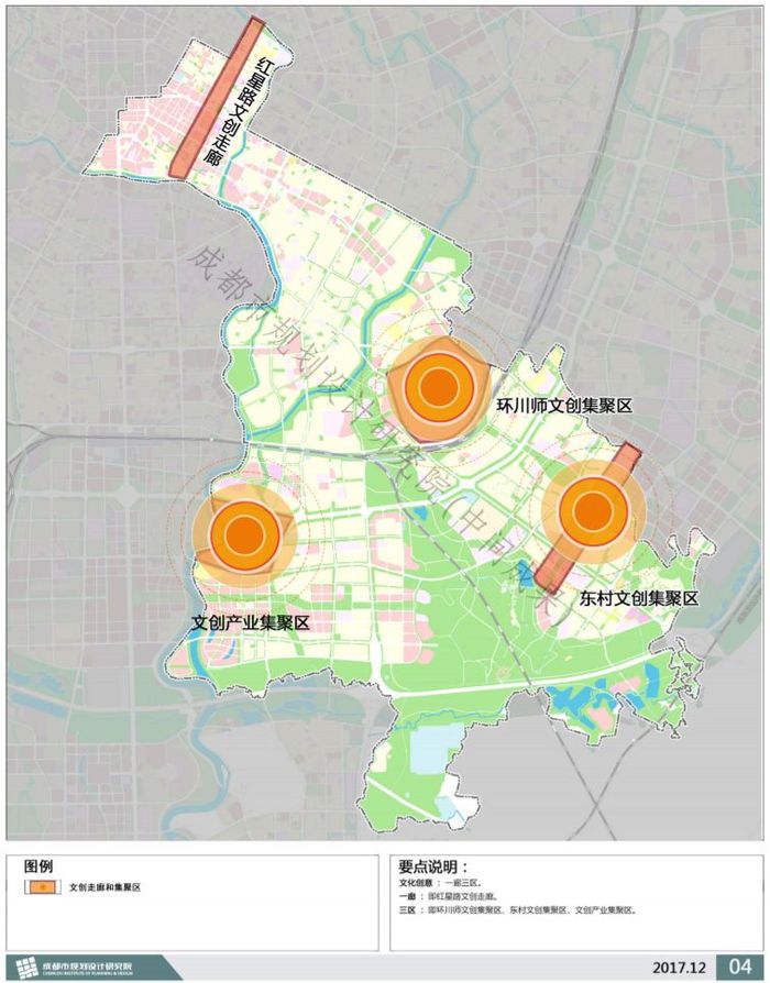 “ 一廊 ” 指红星路文创走廊,重点发展现代传媒、广告设计; “ 三区 ” 指环川师文化创意集聚区、东村文创集聚区和文创产业集聚区。
