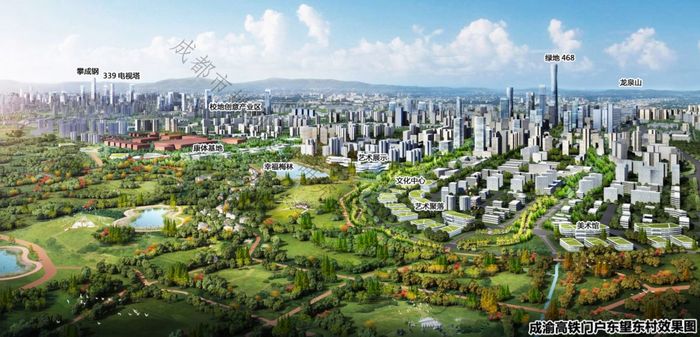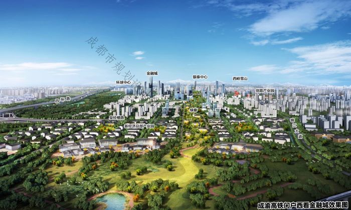 塑造地标预留视线廊道,成渝高铁门户可西看金融城,东看东村。