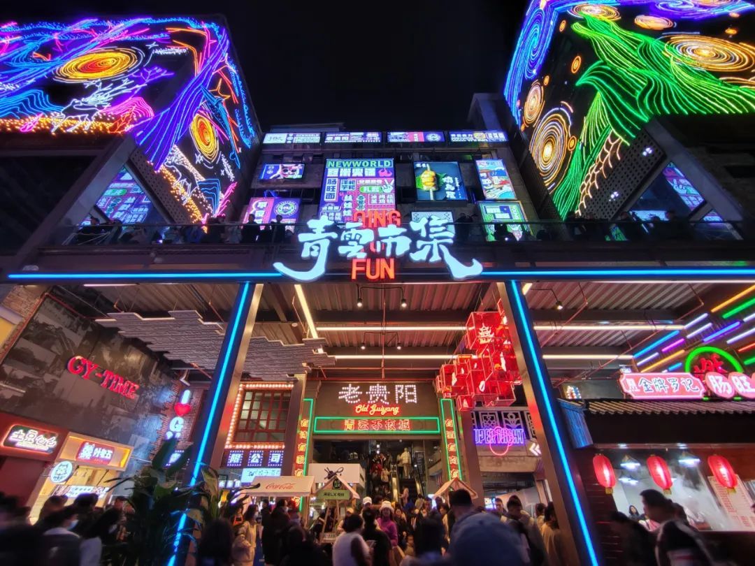 才刚刚开始!凌晨时分,太平路、花果园、喷水池的夜市依然“燥”得火热,各式各样的酒吧与烧烤摊座无虚席,大街小巷还是人来人往,直播献唱、蹦迪热舞、把酒言欢、拍照打卡……市民们在流光溢彩的楼宇间尽情“解放天性”。