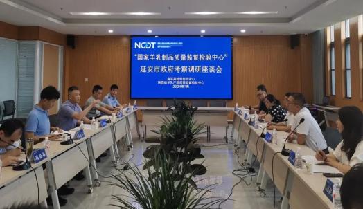 在富平县“国家羊乳制品质量监督检验中心(陕西)”,考察组一行参观了实验室,详细了解了实验室建设、人员配置、设备配备、检验检测能力等情况。座谈会上,富平县人民政府副县长艾路阳介绍了富平县基本县情以及羊乳产业的基本情况,市场监管局局长张春琦介绍了富平县检验检测中心的基本情况以及国家羊乳制品质量监督检验中心(陕西)项目的筹建情况,检验检测中心主任赵景卫对“国家羊乳制品质量监督检验中心(陕西)”建设筹建基本历程、遇到的困难以及当前存在的主要短板等方面进行了交流发言,并对延安筹建陕西省地理标志检验检测(延安)中心提出了宝贵的建议意见。李琦就当前延安市在筹建省级地理标志产品检验检测中心相关问题与中心负责人进行交流,双方还就检验检测如何为经济社会高质量发展提供技术支撑等相关问题进行了深入交流。