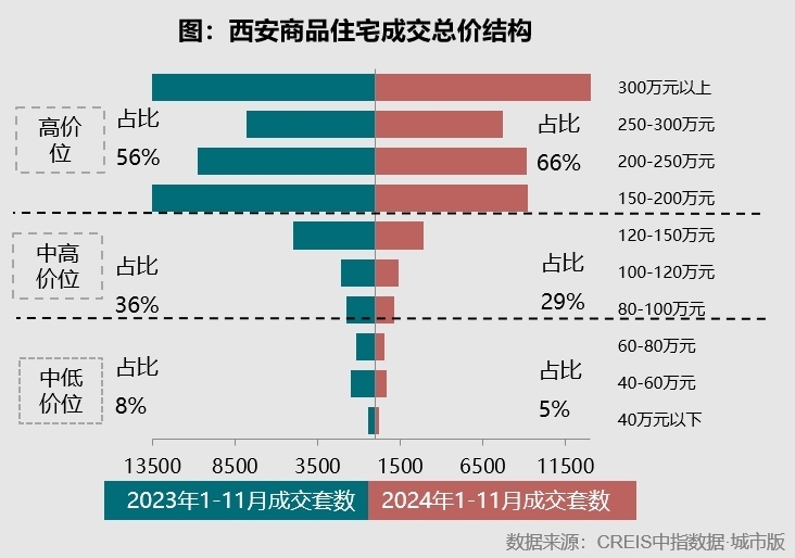 “前几年,西安大量高价地块入市,地价一直处于上涨态势,房企在这些高价地块上推出了高溢价的产品,进一步推高了房价。同时,近年来西安住宅品质不断提升,高端改善和豪宅类产品集中入市带动了成交份额扩容,结构性拉升了房价。”石蕊进一步表示。