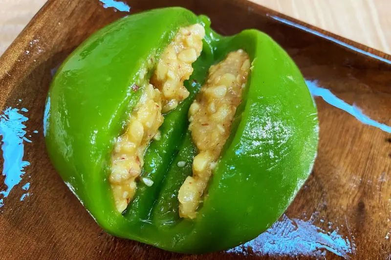 虽说沈大成的这两款青团都主打“辣”,但品尝下来,实际口味都不算很辣。他家的原料也是相当丰富,来自高邮的咸鸭蛋,搭配印度魔鬼辣椒,再配合上些许老干妈,鲜中带辣、辣里回甘,虽然刺激了味蕾,但青团清爽的表皮刚好中和了辣,回味无穷。