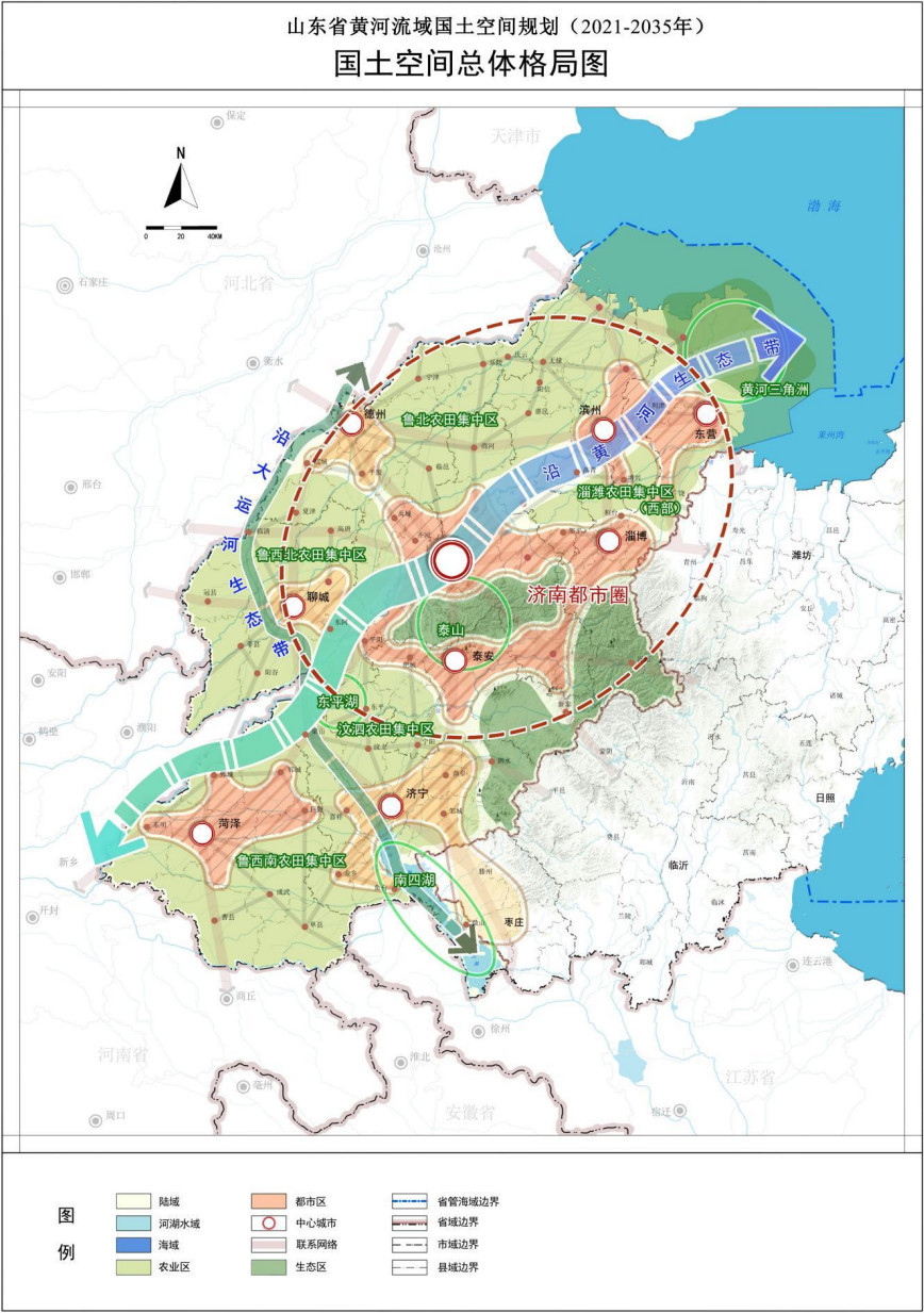 根据《规划》,“一圈”即济南都市圈,强化核心带动作用,打造黄河流域绿色低碳高质量发展引领区。“两带”即黄河、大运河,“五区”即鲁北、鲁西北、鲁西南、汶泗、淄潍(西部)五大农田集中区。