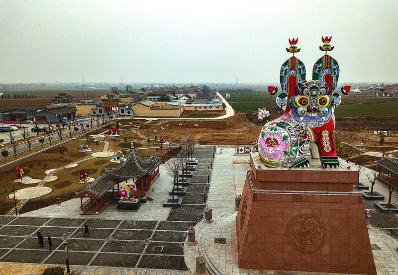 2月28日,记者一行还未进村,一尊巨型“泥塑坐虎”就映入眼帘。这尊“泥塑坐虎”前腿立后腿坐,双目炯炯有神。“泥塑坐虎”色彩鲜艳,身上有牡丹、荷花等象征吉祥的图案,前腿还有“四季平安”四个大字。