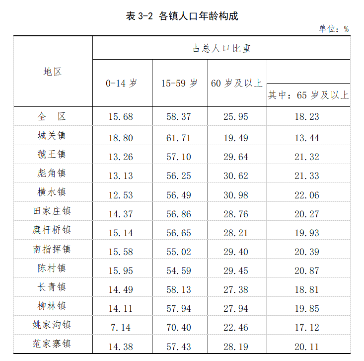 12个镇65岁及以上老年人口比重均超过13%,其中,7个镇65岁及以上老年人口比重超过20%。