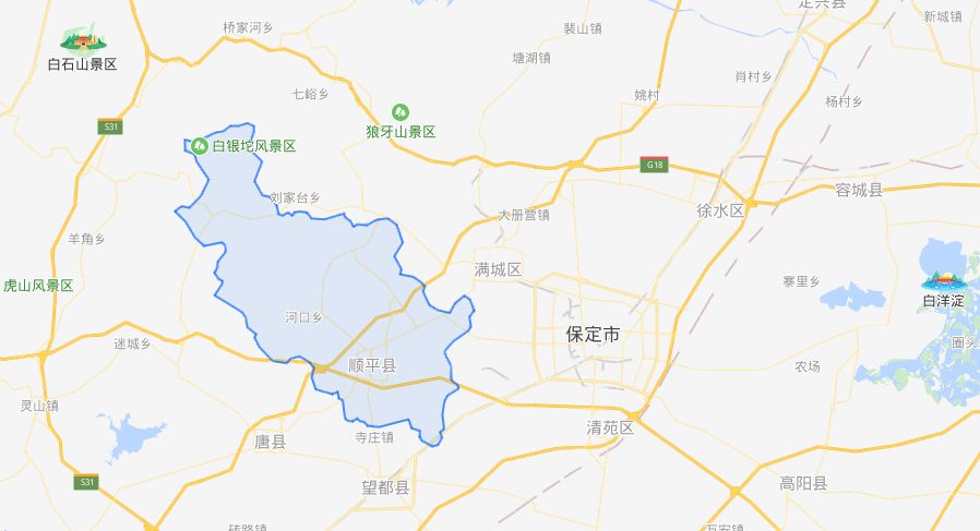 顺平县位于河北省西部,保定市西郊,地理坐标为北纬38°45′-39°09′,东经114°50′-115°20',全县总面积712平方千米,总人口31.5155万人。顺平县地处太行山脉与华北平原的连接线上,境内从西北向东南山地、丘陵、平原呈顺序性排列,各占1/3。京昆高速、沧榆高速和107国道穿境而过。