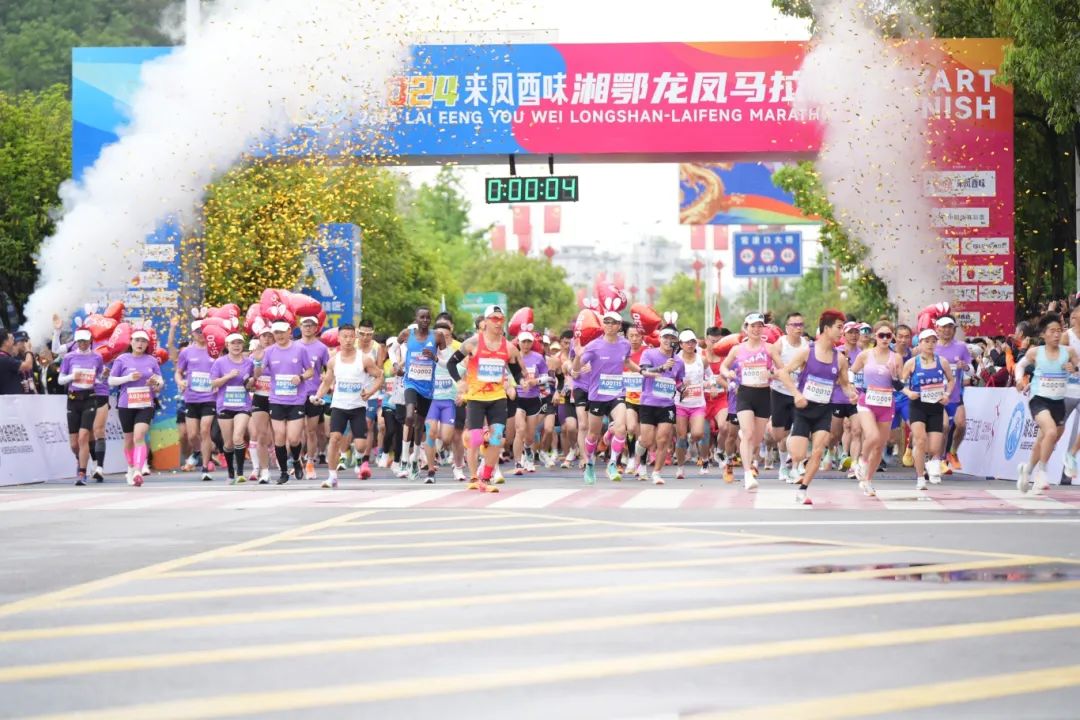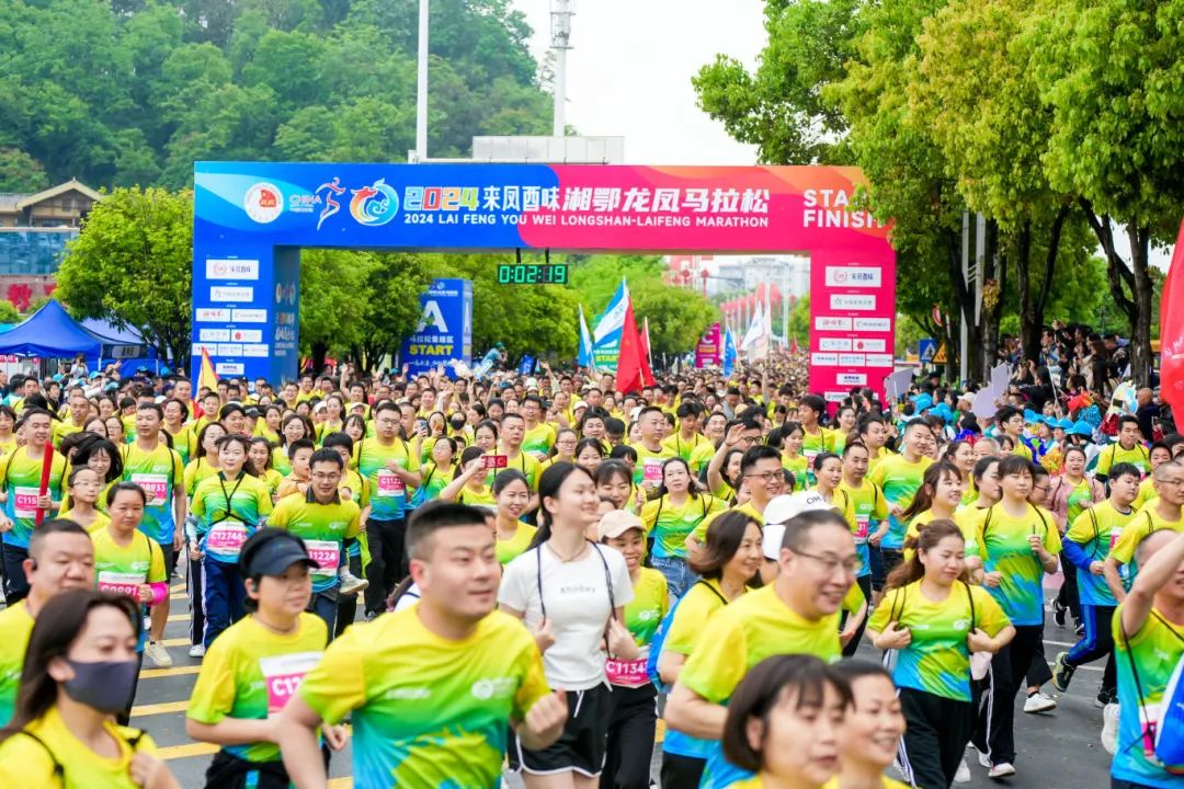 一马两省,相约龙凤!4月21日上午7时30分,2024湘鄂龙凤马拉松在湖北省恩施州来凤县鸣枪起跑,作为中国田径协会认证的A1类赛事,今年的“龙凤”马吸引了来自全国各地的23000名选手参赛。