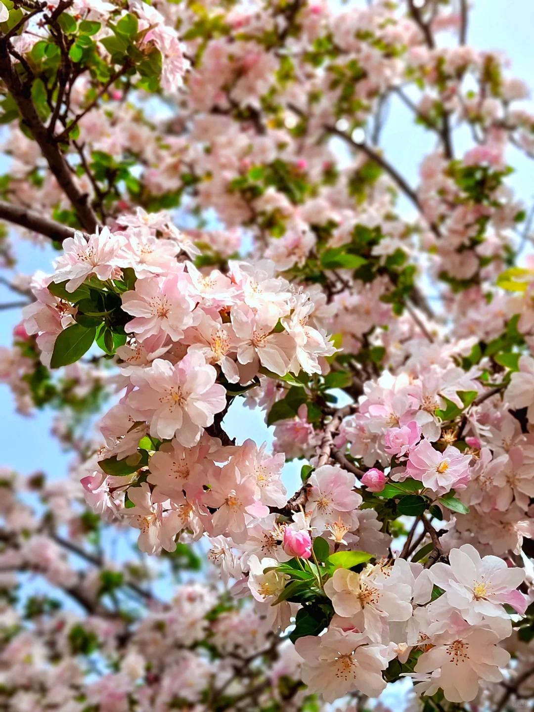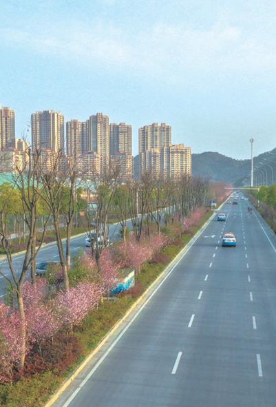 3-4月正值海棠花的花期,紫霄大道上的海棠花竞相盛开,一朵朵一簇簇的海棠花俏丽枝头,层层叠叠,灼灼灿灿,红如胭脂、粉如朝霞,为春天带来浪漫的色彩。