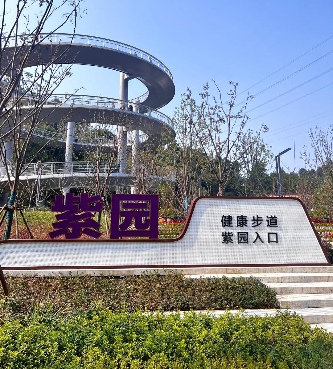 不仅如此,位于紫霄大道的紫园还是十堰健康步道的入口之一。健康步道自2023年10月18日正式开放以来,就拥有超高人气,成为十堰最热门的休闲健身和网红打卡地。这独特的螺旋塔造型,被市民们亲切地戏称为“大面筋”。(不得不说,真的很形象