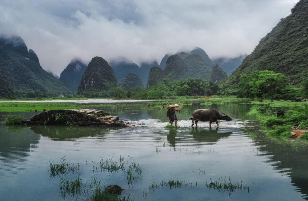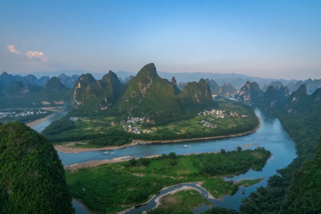 畅游漓江,感受桂林的烟雨。水墨漓江,丹青桂林,漓江的水清澈如碧,宛如一条青罗带盘旋在群峰之中,风光秀丽。乘坐竹筏,穿梭在山林之间,将两岸美景尽收眼底,碧水悠悠,奇峰倒影,非常诗意美好。