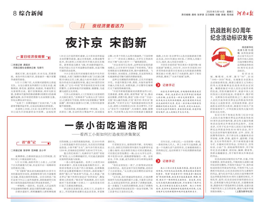 “近年来,我们将建设特色街区、打造消费场景作为经济发展的重中之重,丰富多元的业态,让来到这里的市民、游客多了消费新选择,进一步激发了大家的消费热情,拉动了消费热度,成为洛阳市商业街区的一块金字招牌。”西工区委书记王进告诉记者。