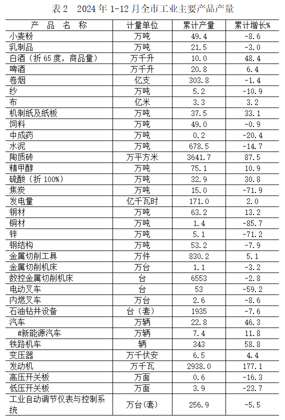 全年规模以上工业增加值比上年增长7.9%。按门类分,采矿业增加值增长14.1%;制造业增加值增长7.8%;电力、热力、燃气及水的生产和供应业增加值增长1.7%。