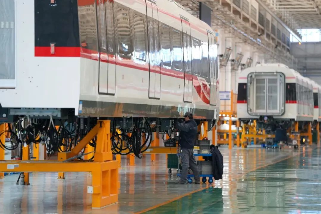 在京投装备河北京车智能制造基地,工作人员在总组装车间内工作。新华社记者 鞠焕宗 摄