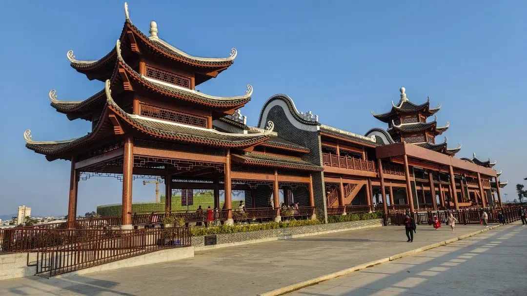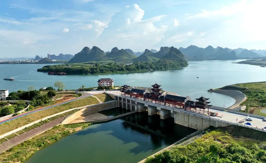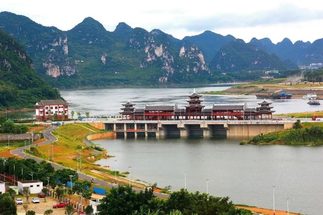武宣风雨桥位于武宣大藤峡库区七星河口,调节坝的桥墩上,由亭、廊、阁楼组成。设计中吸收了文庙等武宣建筑的文化元素,建成造型美观、风格独特的一座廊桥,成为武宣民众活动中心,网红的打卡点。