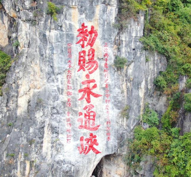 摩崖石刻“敕赐永通峡”位于武宣县城南黔江右岸卜玉山之北,碑面朝黔江。明正德丙子岁(1516年)秋,两广总督陈金命人在卜玉山悬崖峭壁上刻“敕赐永通峡”五个大字及两行题款37个小字,以纪功垂名。该碑是明代广西大藤峡地区瑶壮农民起义的历史见证,也是大藤峡几次更名及重要历史事件的物证。