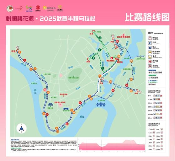 半马赛道自1公里至约14公里处,选手会沿黔江路一路前行,纵览五马拦江景区的大好风光。