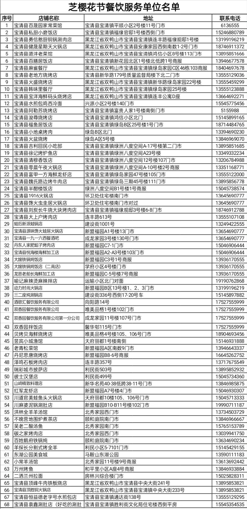 5月28日,第一届黑龙江宝清芝樱花旅游文化节就要开幕啦!为了让广大粉丝更好了解我们宝清的美食、美景,宝清县经合局联合市监局、文旅局和融媒体中心特推出芝樱花旅游文化节最强攻略,有关吃、住、行、游、娱、购系列报道,让大家一秒钟全部get到位!本期推出的是我县部分火锅店和小吃美食,请广大游客和市民积极参与,为自己认可的商家投上满意的一票。