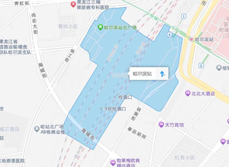 地铁指引:可乘坐地铁2号线到达哈尔滨北站,然后按标识进站
