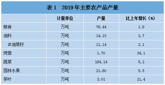 全年粮食产量76.44万吨,增长1.9%。其中:夏粮23.77万吨,增长2.0%;秋粮52.67万吨,增长1.8%。全年谷物产量52.17万吨,增长1.4%。其中:稻谷产量14.12万吨,与上年持平;小麦产量8.37万吨,增长0.5%;玉米产量29.02万吨,增长2.5%。