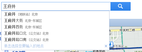 在搜索框输入位置信息的过程中,会根据输入的内容给出建议提示,可供快捷选择位置信息内容。
