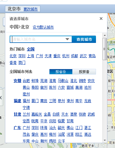 在地图左上角单击“更换城市”按钮,可以切换当前城市。