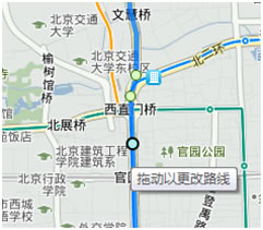 在查询到路线方案后,拖动路线上的任意位置到另外一个点,可以在路线上增加途经点。