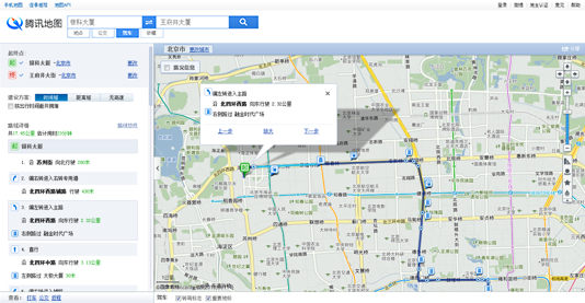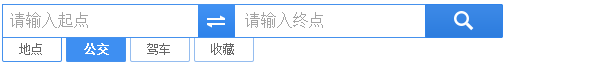 在搜索框中选择“公交”标签,输入起点和终点的位置信息,获得线路查询结果。