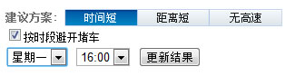 在左侧文字区路线方案上方,可以根据不同需求选择相应的线路优化方案,获得更合适的建议路线。