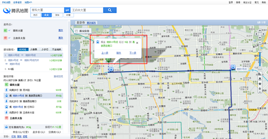 还可以在搜索框中选择“公交”标签,然后用鼠标右键在地图上标记起点和终点,获得线路查询结果。