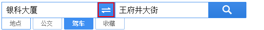 在搜索框中选择“驾车”标签,输入起点和终点的位置信息,获得驾车查询结果。