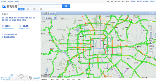 在地图左上角勾选“路况信息”,可以在地图上观看实时路况信息。