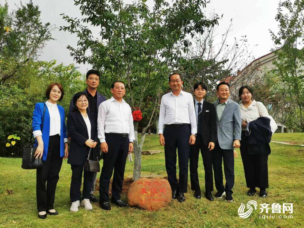 (图 /  “友城走进威海”系列活动成功举办,韩国济州代表团在友谊树合影)