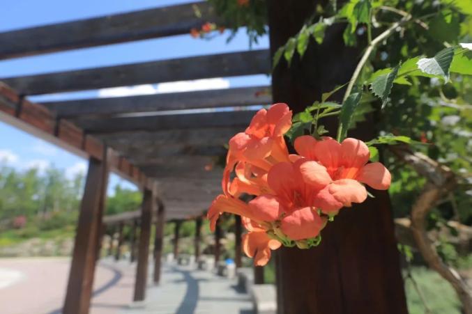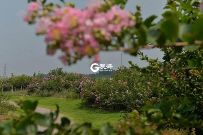 四园指的是玫瑰园、红枫园、杜鹃园、百果园,每个季节都有不一样的风景,4月杜鹃漫山遍野,5月玫瑰争奇斗艳,6月蜀葵花团锦簇。此时,紫薇园里的紫薇正在盛放,喜欢这片花海的人们可以去观赏。