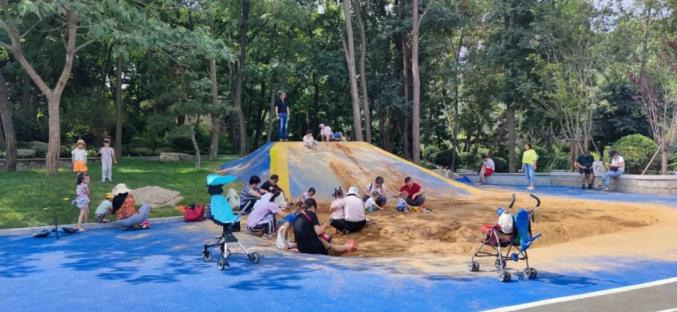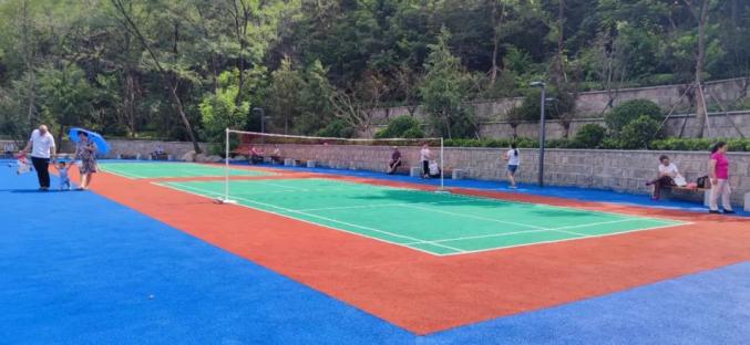 新建的运动公园内设有两个羽毛球场、色彩明艳的塑胶跑道。儿童活动区内,沙坑、儿童滑梯、儿童攀岩等游乐设施受到了孩子的喜爱,尤为贴心的是,旁边还设置了看护区,为家长提供了遮荫休息的场地,每到夜幕降临,这里就变成了欢乐的海洋。