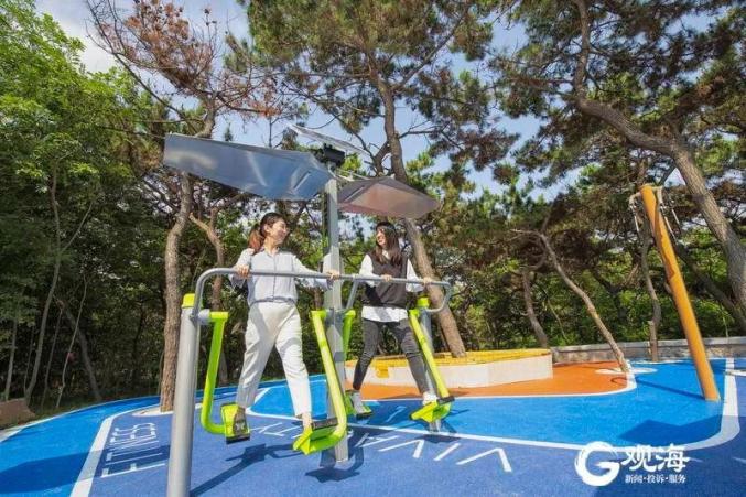 虽然和网红燕儿岛公园相比,这里的人还不多,但是公园设施十分完备,不仅有观景台、观景亭,还有超大的健身空间,既可以欣赏美景,还能放松身心。