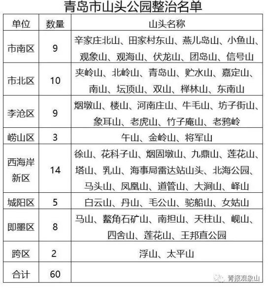 近期,青岛宣布将对这些山头公园