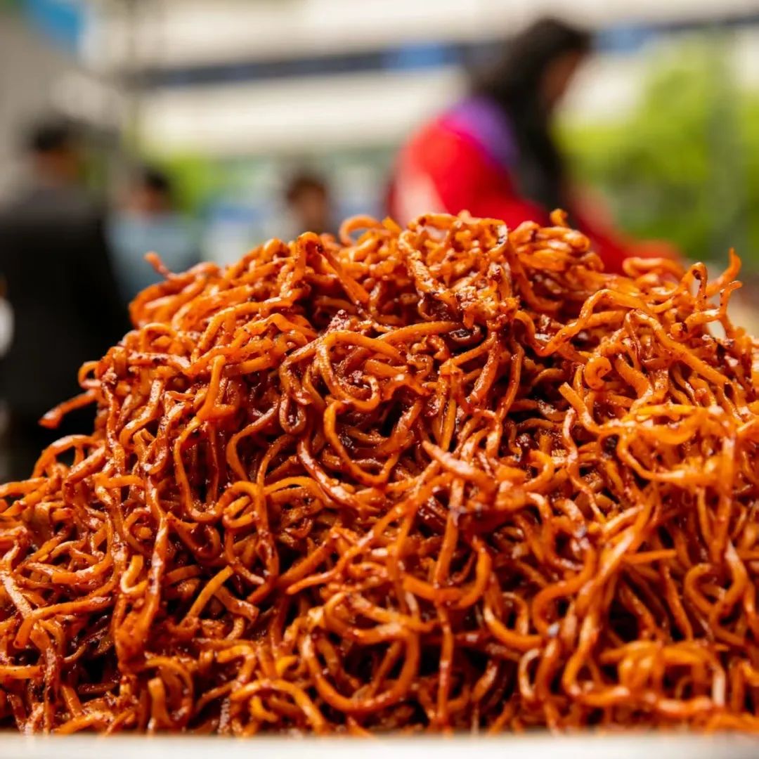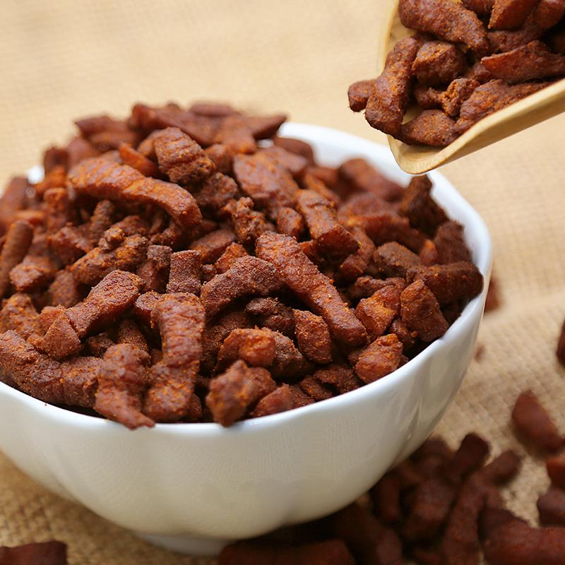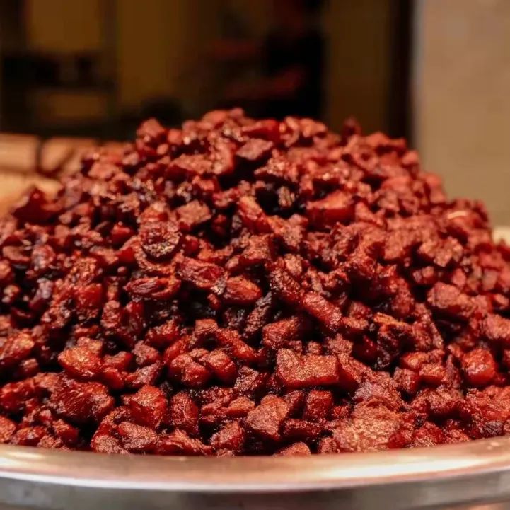 脆哨,在贵阳人心中仅次于折耳根。用料酒、生抽等各种调料制成以香、咸、脆、爽,有嚼头,五花肉熬制出来的软哨,大肥肉被榨干制成的脆哨,还有精瘦肉熬制的精哨,也有稍带点肥肉熬制的瘦肉哨子,入口松脆,满嘴干香。脆哨直接当零食吃,一颗一颗根本停不下来;与粉面搭配让美味更上一层楼;与别的配菜一起炒制,化身下饭神器,是贵州美食圈的“黄金配角”。