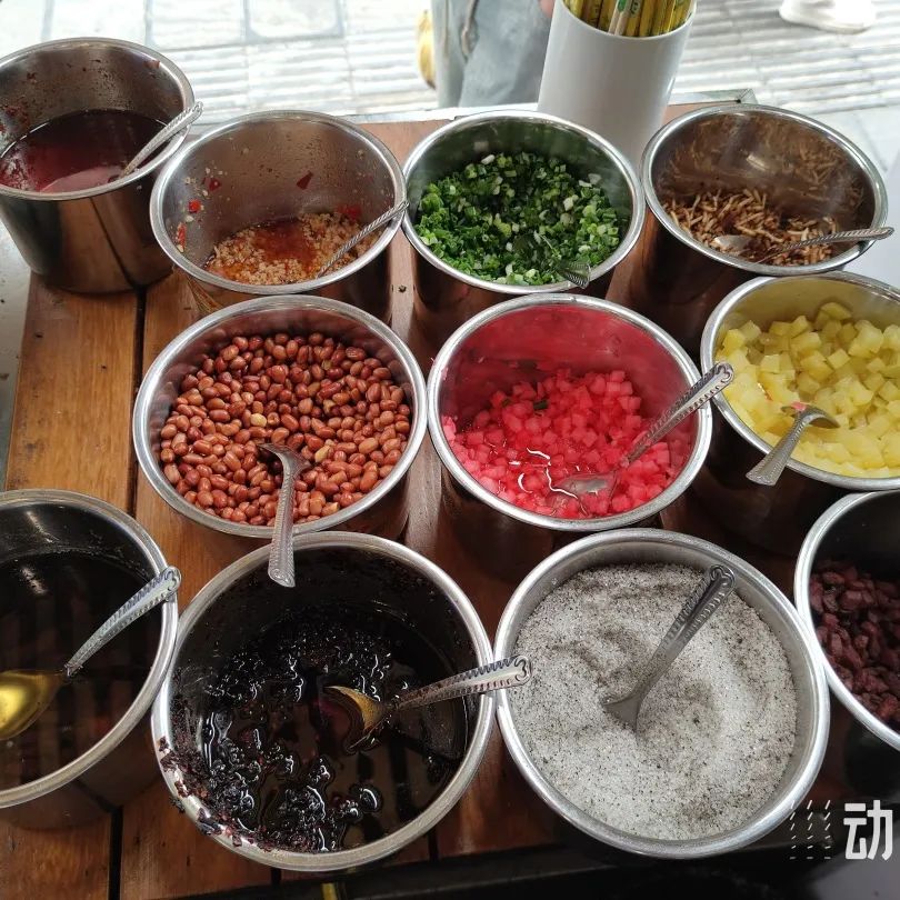 在贵州,早起来上一个糯米饭,让贵州碳水界天花板帮你直接开启活力满满的一天!各种丰富的小料被包裹在软糯的糯米里,脆哨的焦香、折耳根的清爽、酸萝卜的酸爽、辣椒的热辣、土豆丁的绵软、花生米的香脆、白砂糖的甜蜜 ,咸、甜、辣在舌尖碰撞交融,口感层次丰富,每一口都软糯又有嚼劲,还带着油润的香气,简直让人欲罢不能。