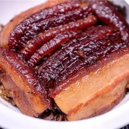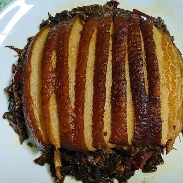 深褐色的盐菜与金黄色的扣肉完美融合,鲜香之气扑鼻而来,扣肉的肉质醇厚而不腻,令人垂涎欲滴。一道盐菜扣肉无论多少年依旧是贵州人餐桌上不可缺少的一道菜,轻轻咬下一口,瞬间肉香四溢,满口的幸福感油然而生,这便是家的味道,是团圆与幸福的完美诠释。宝子们带回家直接清蒸便是盐菜肉最美味的吃法。