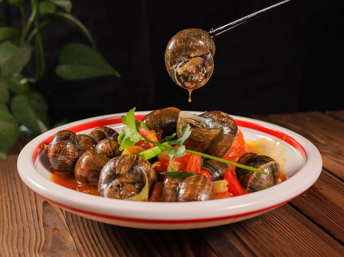 田螺酿,实际上是漓江田螺肉,再加上切碎的猪肉和薄荷香料,味道没得顶!