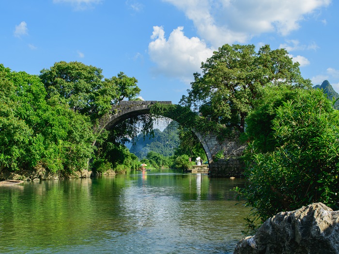 中途会经过临桂区五通镇,这里有不少造型优美的三孔石拱桥,如【西山石拱桥】、【马鞍桥】,时间宽裕的话,可顺路游览。