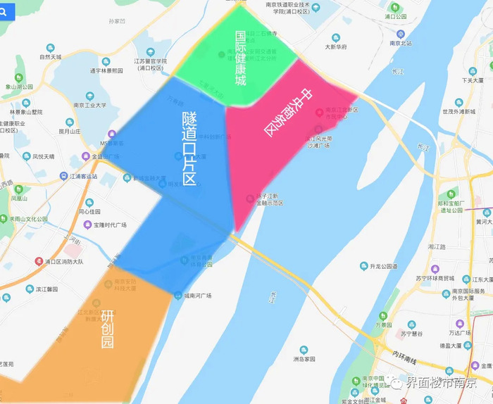 由于大家对于核心区的定义都不一样,我们仅以最常规的定义范围来看,整个核心区是由中央商务区、长江隧道片区、研创园片区构成,每个分区的定位不同,承担着不同的发展使命。
